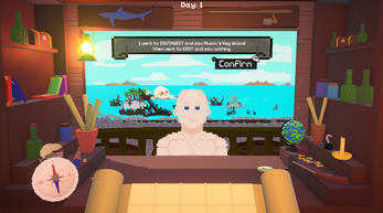 You are positioned at the center of the map. Your objective is to reconstruct the world by listening to the reports of visiting sailors and recording their findings on your parchment. Use their testimonies to identify landmarks and hazards, then guide them to their requested destinations.